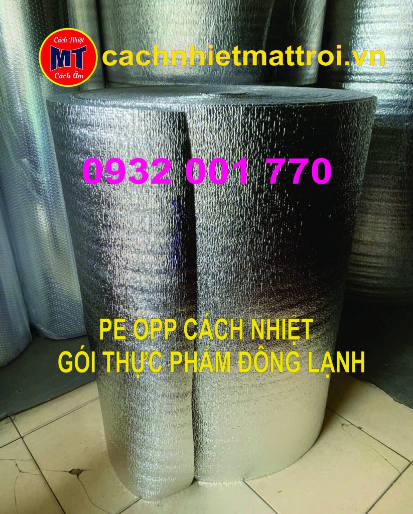 PE OPP là vật liệu gồm lớp mút PE foam kết hợp với lớp màng bạc OPP phủ bên ngoài. Lớp bạc có tác dụng phản xạ nhiệt từ môi trường bên ngoài, trong khi lớp mút PE giúp giữ nhiệt bên trong. Nhờ cấu trúc này, PE OPP có khả năng hạn chế thất thoát nhiệt, giúp thực phẩm đông lạnh duy trì nhiệt độ ổn định trong quá trình vận chuyển.